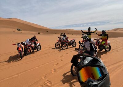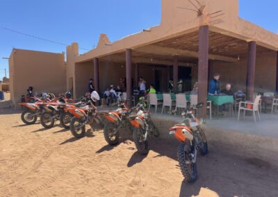 O ponto de encontro é no hotel em Merzouga, onde a equipa estará à tua espera para o check-in, entrega das motos de aluguer (caso aplicável) e briefing de boas-vindas. É também aqui que termina a viagem, no final da aventura.