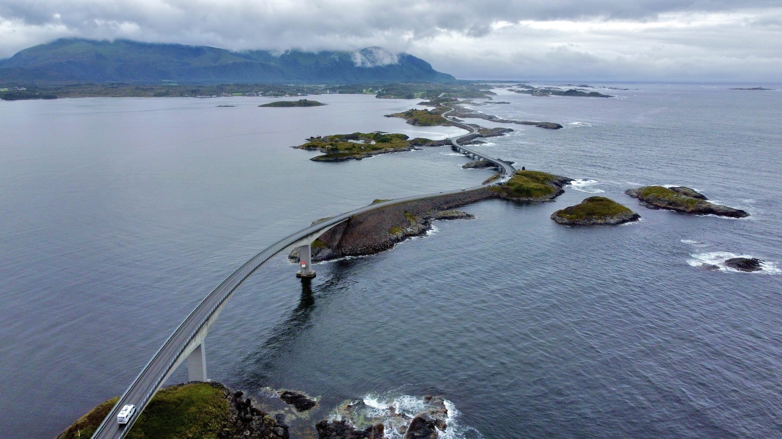 O percurso leva-te por algumas das estradas mais bonitas da Escandinávia, cruzando fiordes imponentes, vales verdejantes e aldeias que parecem suspensas no tempo.
