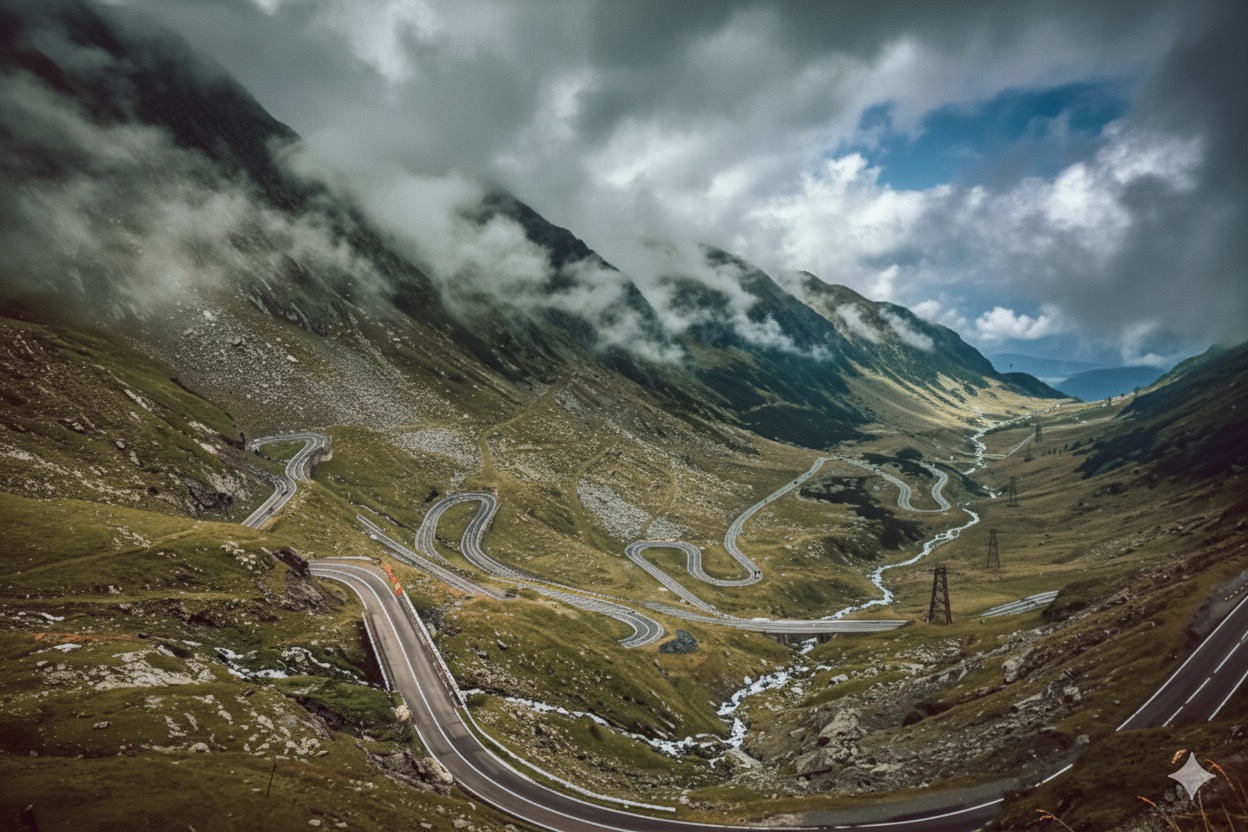 Imagina-te a percorrer as lendárias estradas da Transfăgărășan e da Transalpina, com a tua moto a serpentear entre os picos dos Cárpatos, o vento fresco das montanhas e a paisagem a mudar a cada curva.